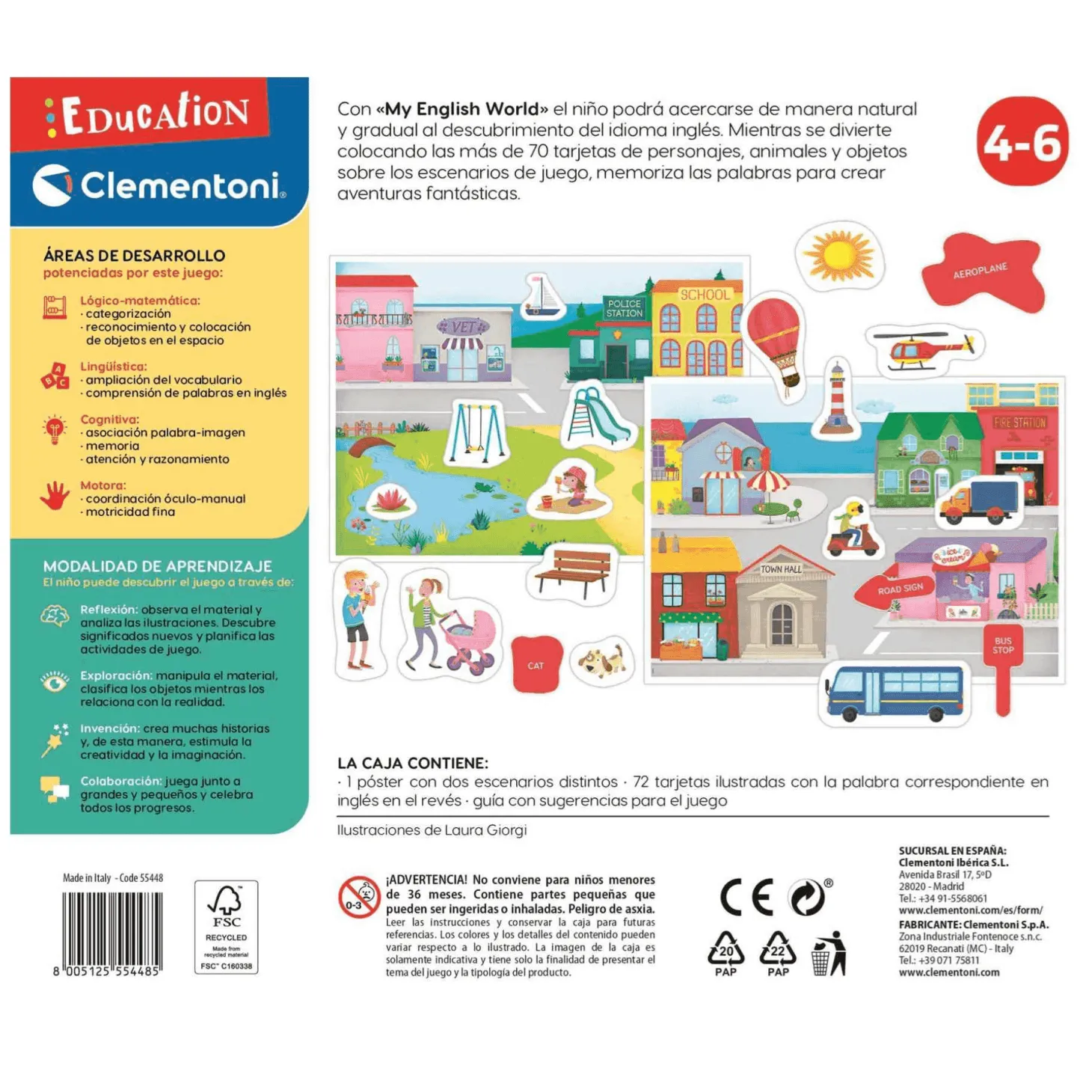 ADVERTENCIA: No recomendable para menores de 3 años, ya que contiene piezas pequeñas que podrían provocar asfixia en caso de ser ingeridas por el niño/a. Mantener fuera del alcance de los niños menores de 3 años. Utilícese bajo la vigilancia directa de un adulto. Retirar el embalaje y las sujeciones antes de dar el juguete al niño.