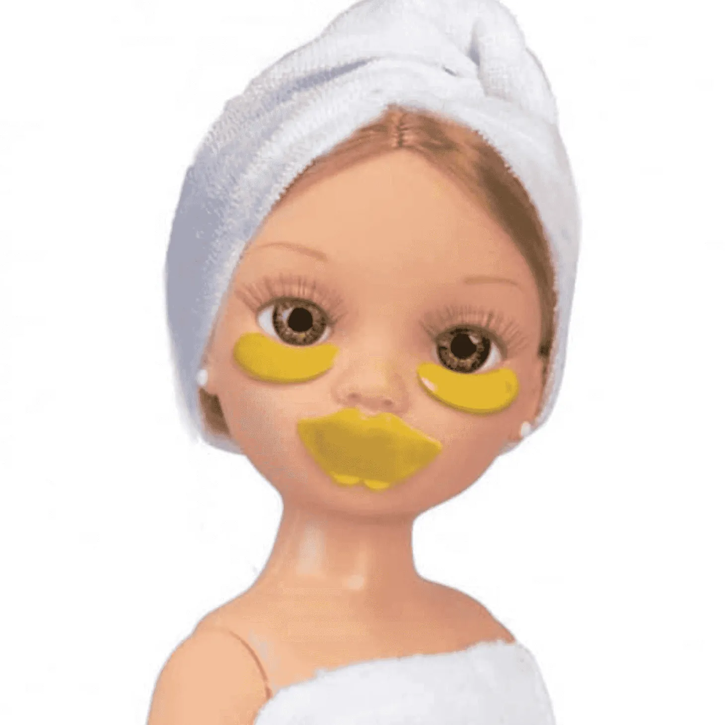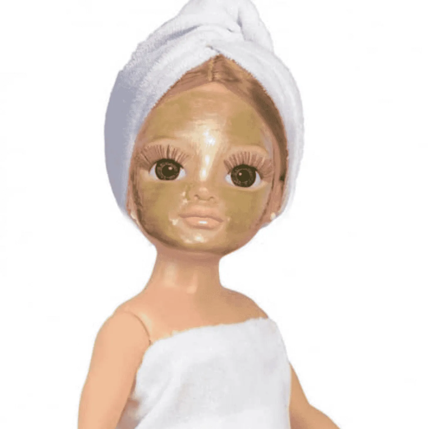 Esta muñeca viene con una serie de accesorios los cuales son una cama de spa, cepillos, envases de crema, maquillaje y toallitas. Se debe colocar el juguete acostado sobre la camilla, de manera que puedan aplicarse las cremas en el rostro para poder retirarlas con las toallas.