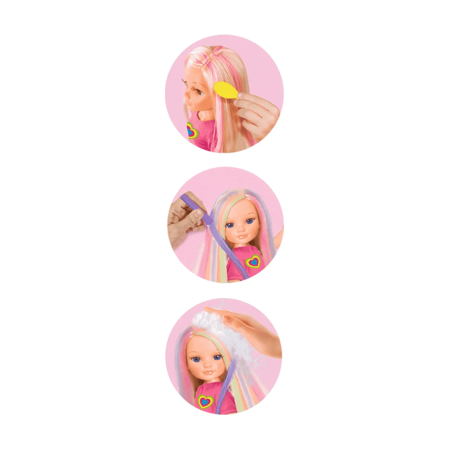 Cepilla el pelo de Nancy y pasa el día creando sus mechas de colores con las tizas de arcoíris. La muñeca Nancy y sus accesorios están recomendados para las niñas y niños mayores de tres años.