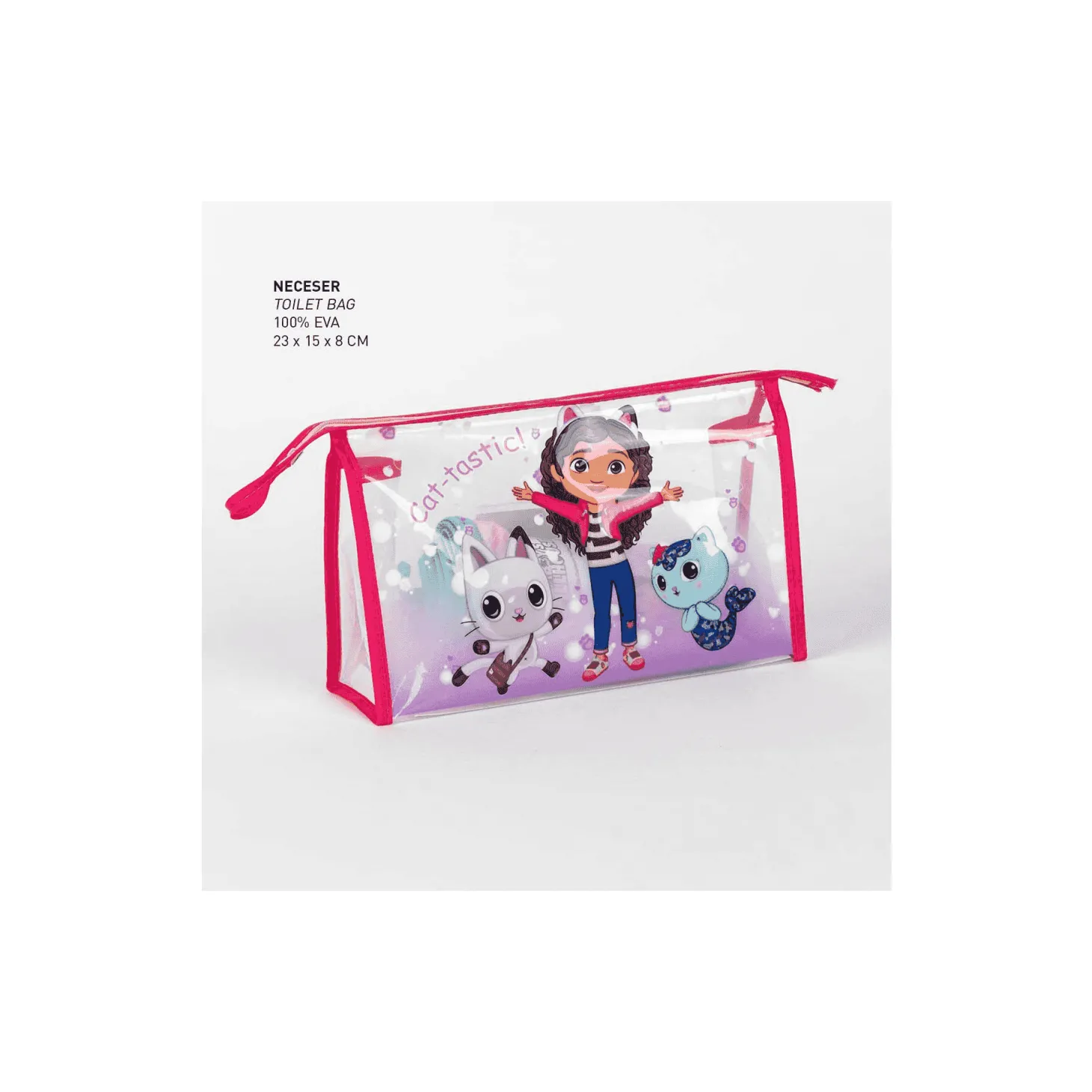 Este neceser es perfecto para llevar al colegio, ya que su tamaño compacto permite guardarlo fácilmente en cualquier mochila o taquilla. Además, el diseño con los queridos personajes de Gabby’s Dollhouse hará que los niños se entusiasmen con su rutina de aseo.