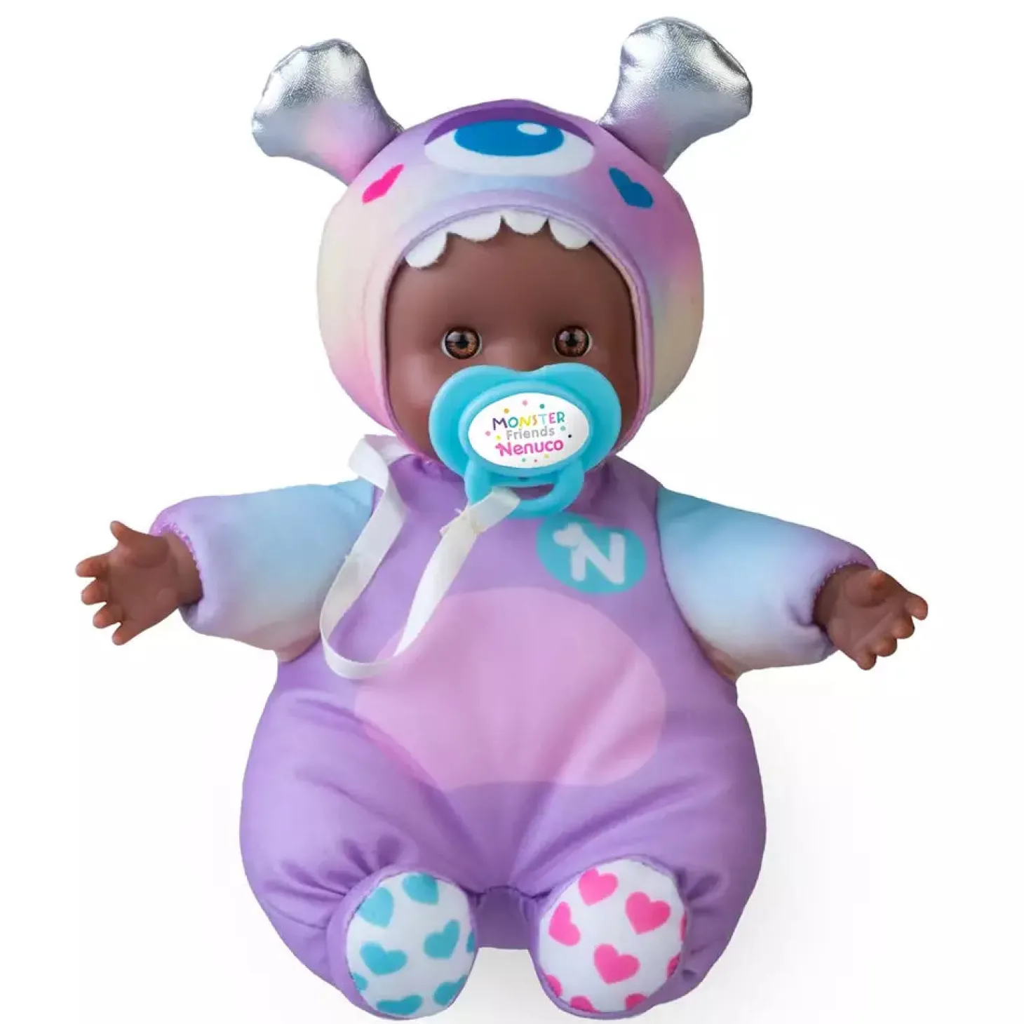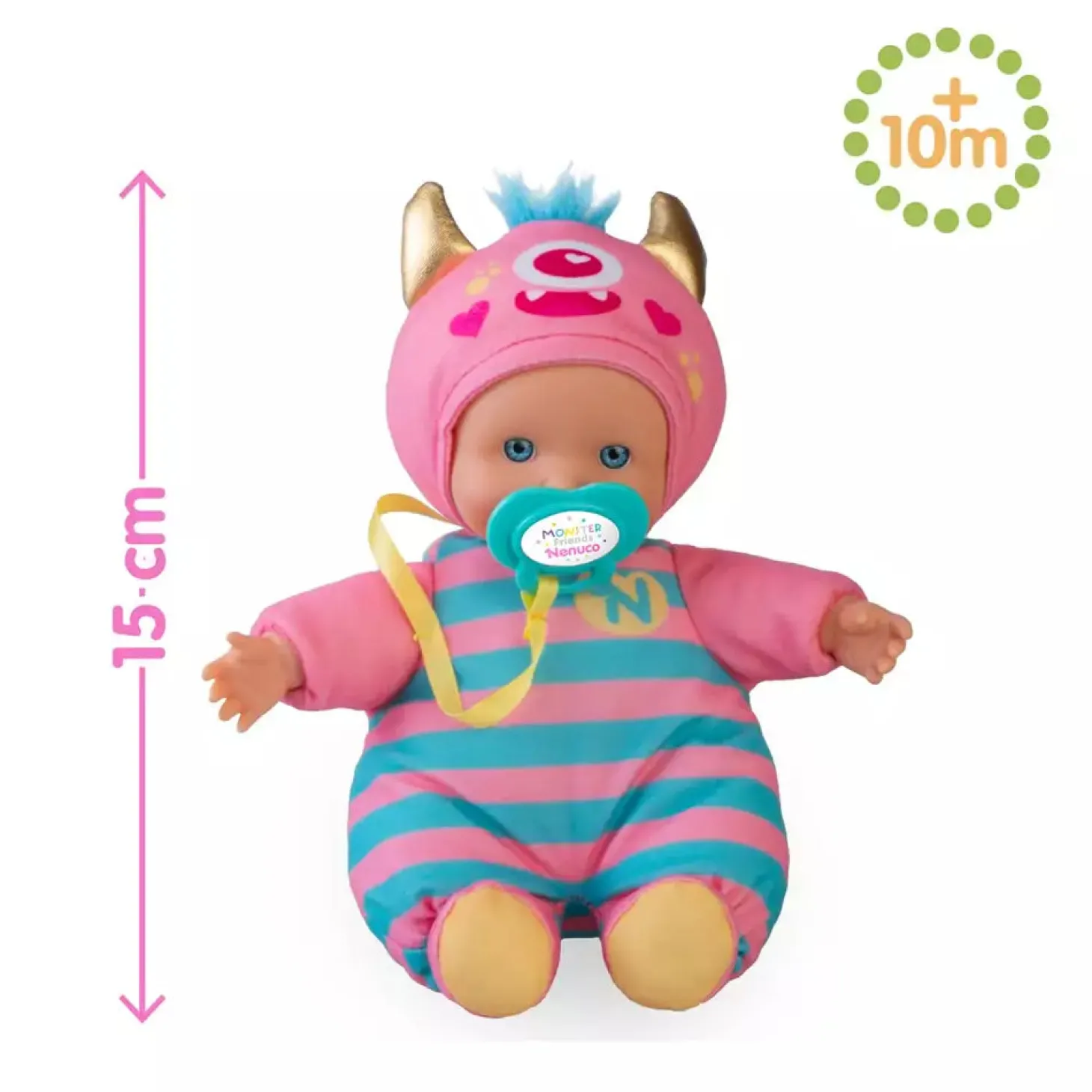 Te presentamos los Nenuco Monster Friends, muñecos de 15 cm con cuerpo blandito, vestidos como mini monstruos adorables y acompañados de un chupete personalizado. Se venden por separado y se envían modelos surtidos al azar, así que cada uno es una sorpresa con mucha ternura.
