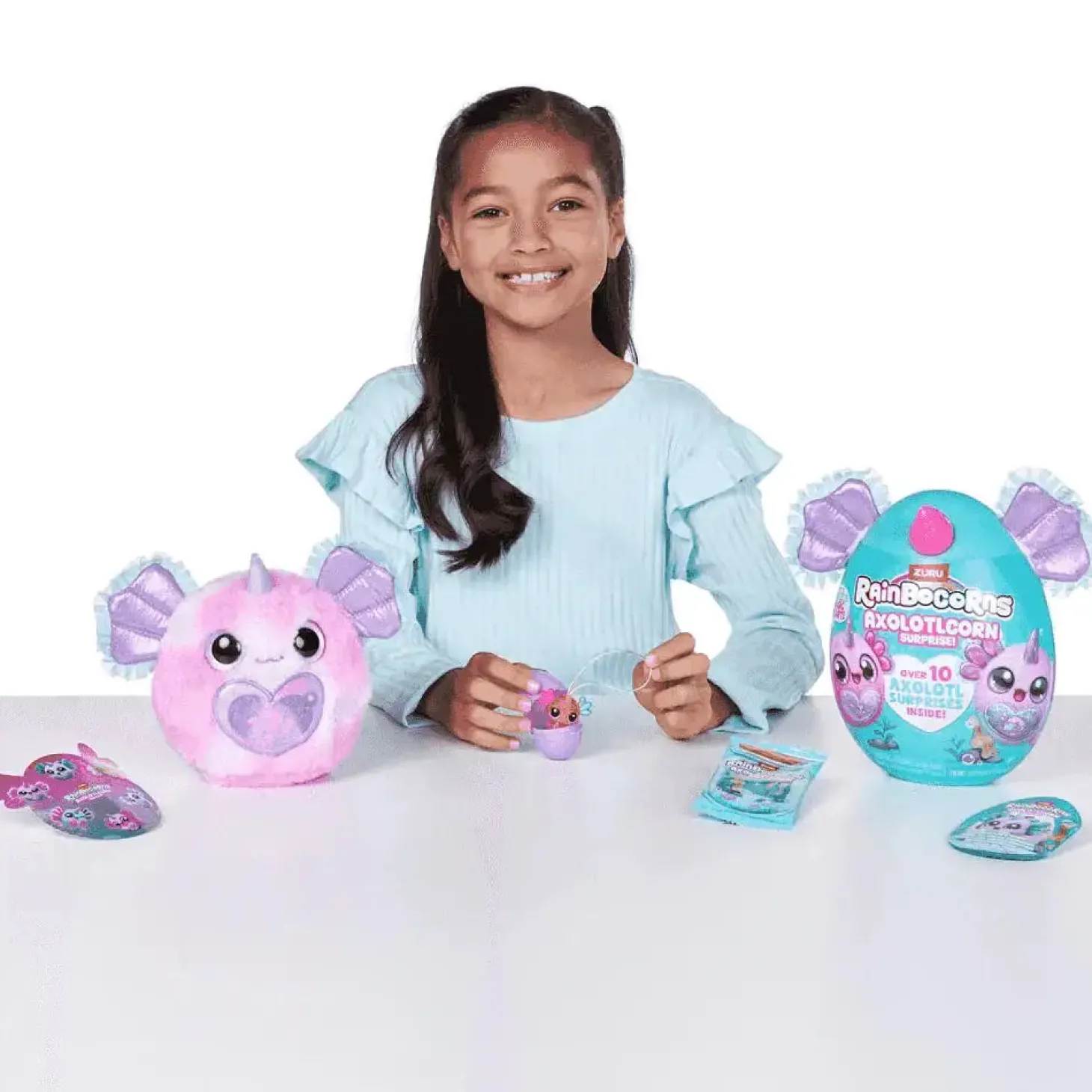 Descubre qué personaje te toca y amplía tu colección Rainbocorns con estos amigos inspirados en axolotes mágicos. Contenido surtido según la serie.