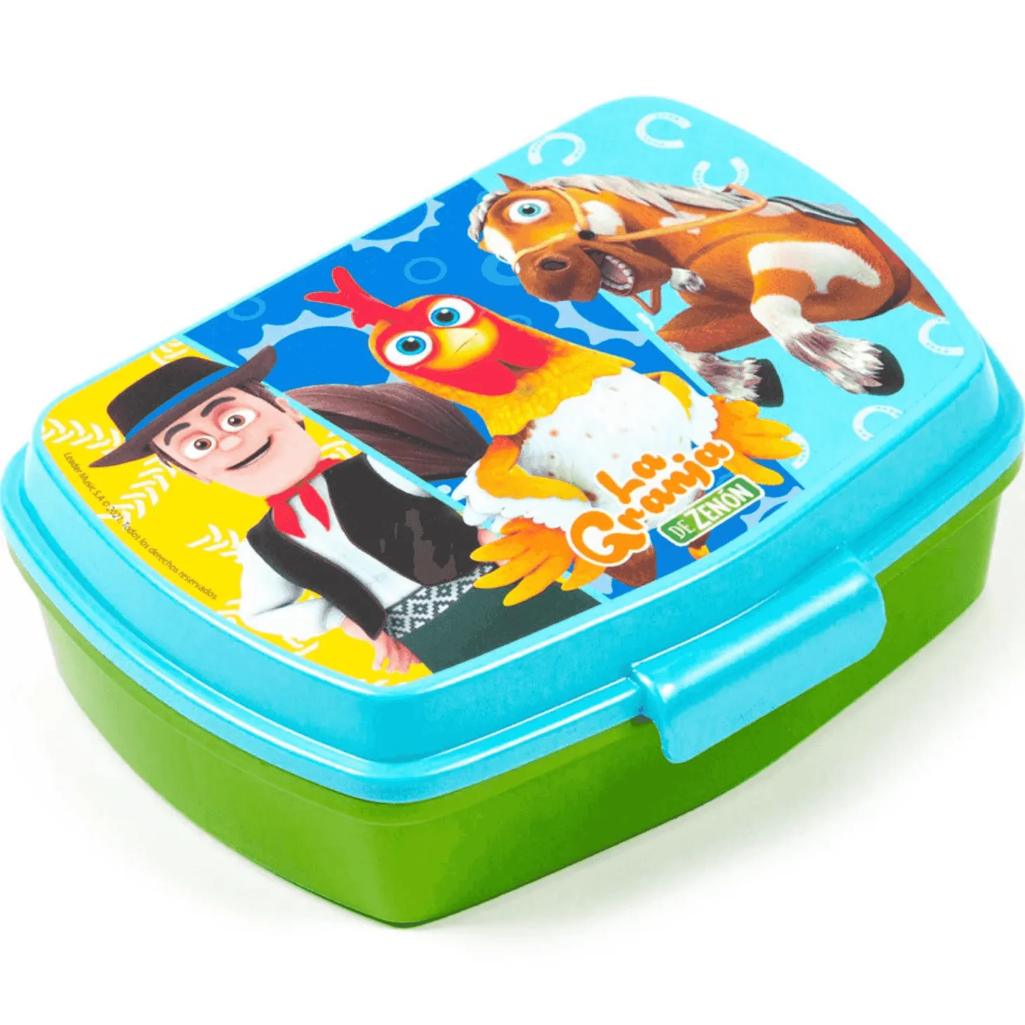 Para los pequeños fans de La Granja de Zenón, esta sandwichera rectangular es el accesorio perfecto. Con un diseño encantador y práctico, es ideal para llevar al colegio, excursiones o actividades deportivas, asegurando que se mantengan alimentados con estilo.