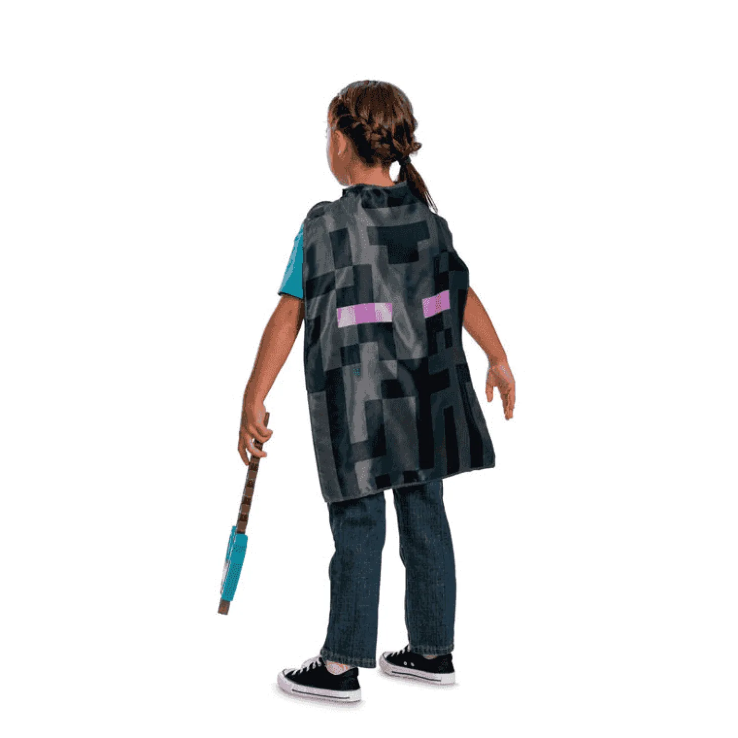 - Capa de Enderman: Una capa satinada con diseño pixelado que representa al misterioso Enderman. Ideal para sumergirse en el rol y vivir aventuras únicas.