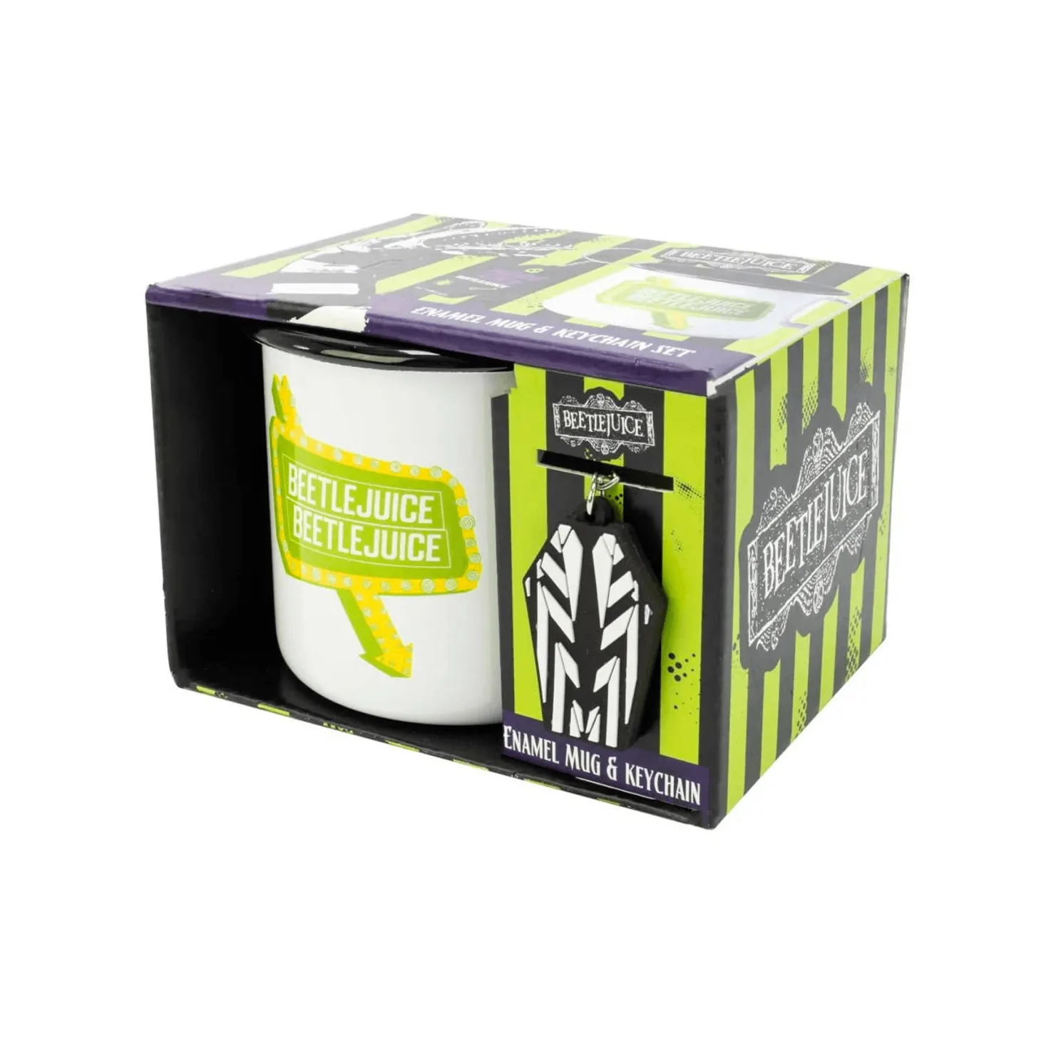 Este set de taza y llavero no solo ofrece una manera divertida de llevar el espíritu de Beetlejuice a tu vida diaria, sino que también es una excelente manera de mostrar tu aprecio por la película. La taza es ideal para disfrutar de tus bebidas calientes favoritas, mientras que el llavero es un accesorio práctico que puedes llevar contigo a donde vayas. Es perfecto para añadir un toque de personalidad y nostalgia a tu rutina diaria.
