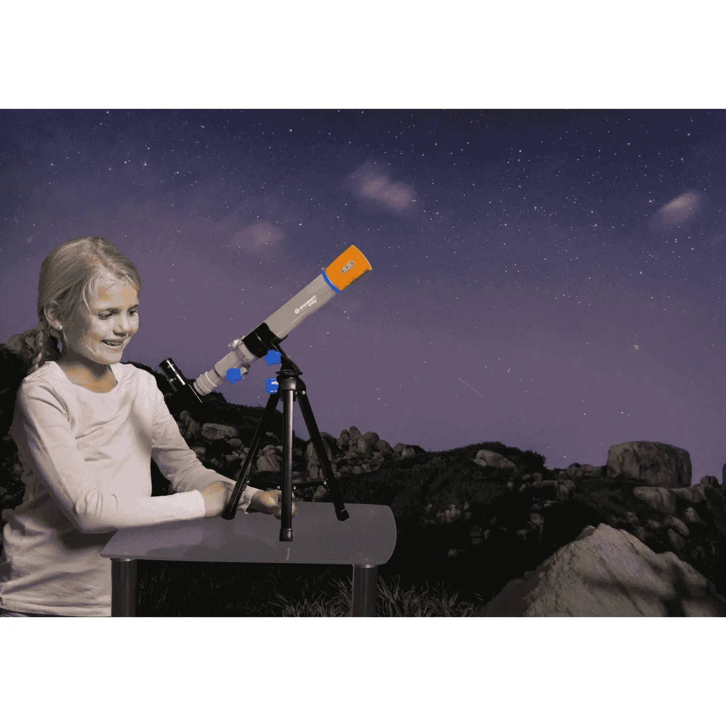 El telescopio es refractor y puede usarse como anteojo. El diámetro del objetivo alcanza una distancia focal de hasta 400 mm, por lo que se pueden reconocer los anillos de Saturno. Favorecen la relación de los niños con las ciencia y la tecnología.