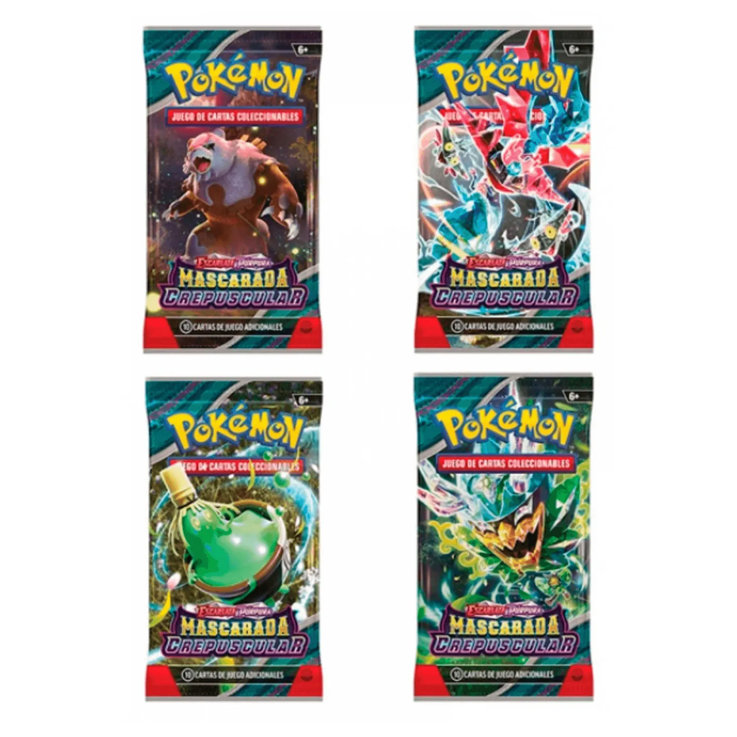 ¡Sumérgete en el emocionante mundo de Pokémon con el Sobre de Juego de Cartas Coleccionables de la serie Mascarada Crepuscular Escarlata y Purpura en español! Este producto es ideal para jugadores y coleccionistas por igual, ofreciendo una experiencia única de colección y juego estratégico.