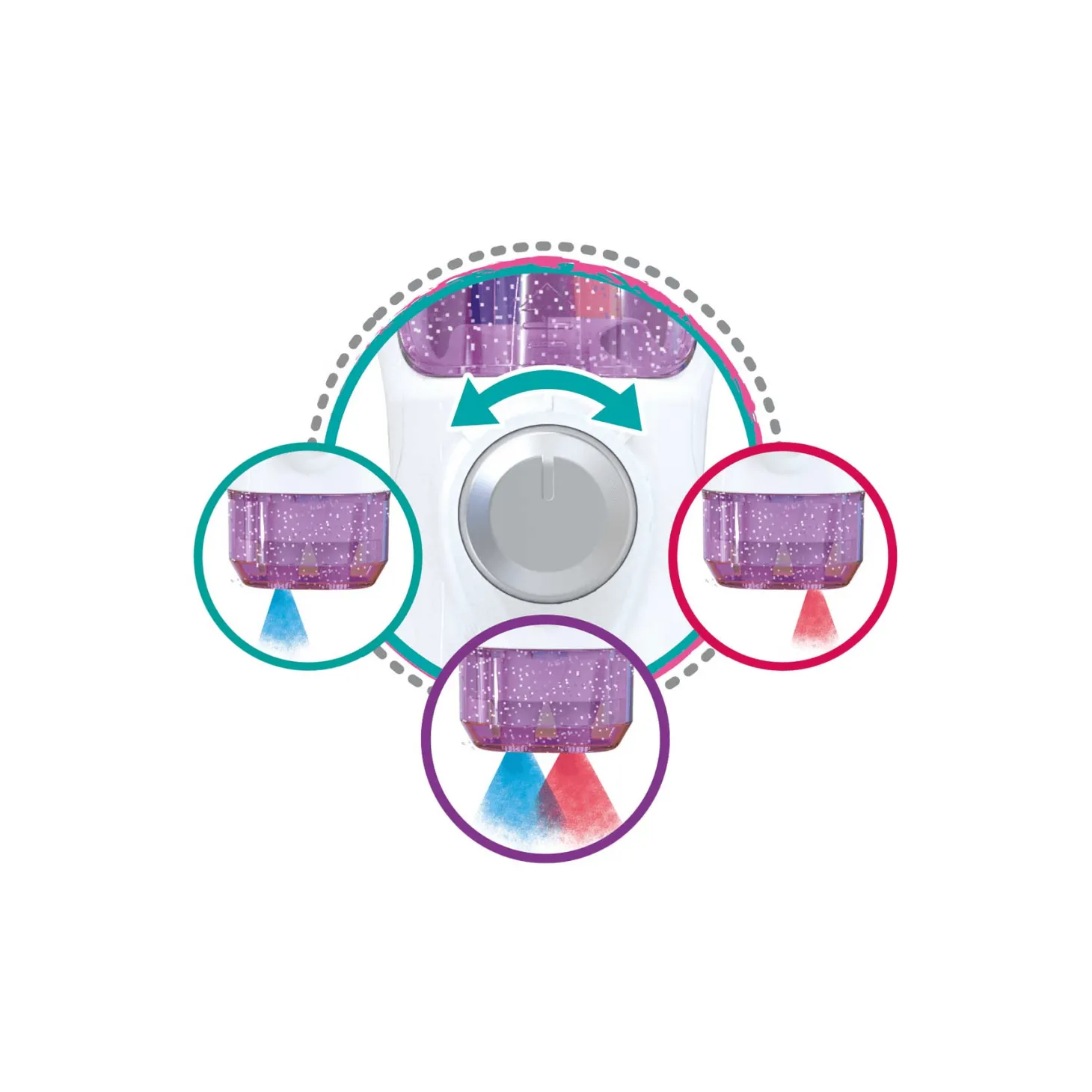 Aerógrafo fabricado en plástico resistente en color blanco y purpura, con botón frontal para el cambio de color.