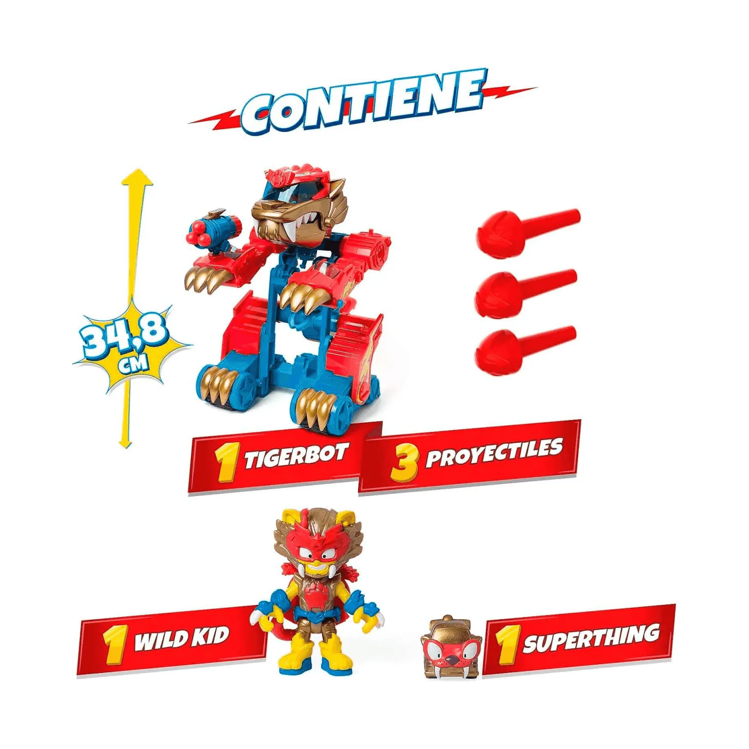 - Figura Exclusiva: Incluye una figura exclusiva de SuperThings que puedes colocar en la cabina del piloto del robot tigre.