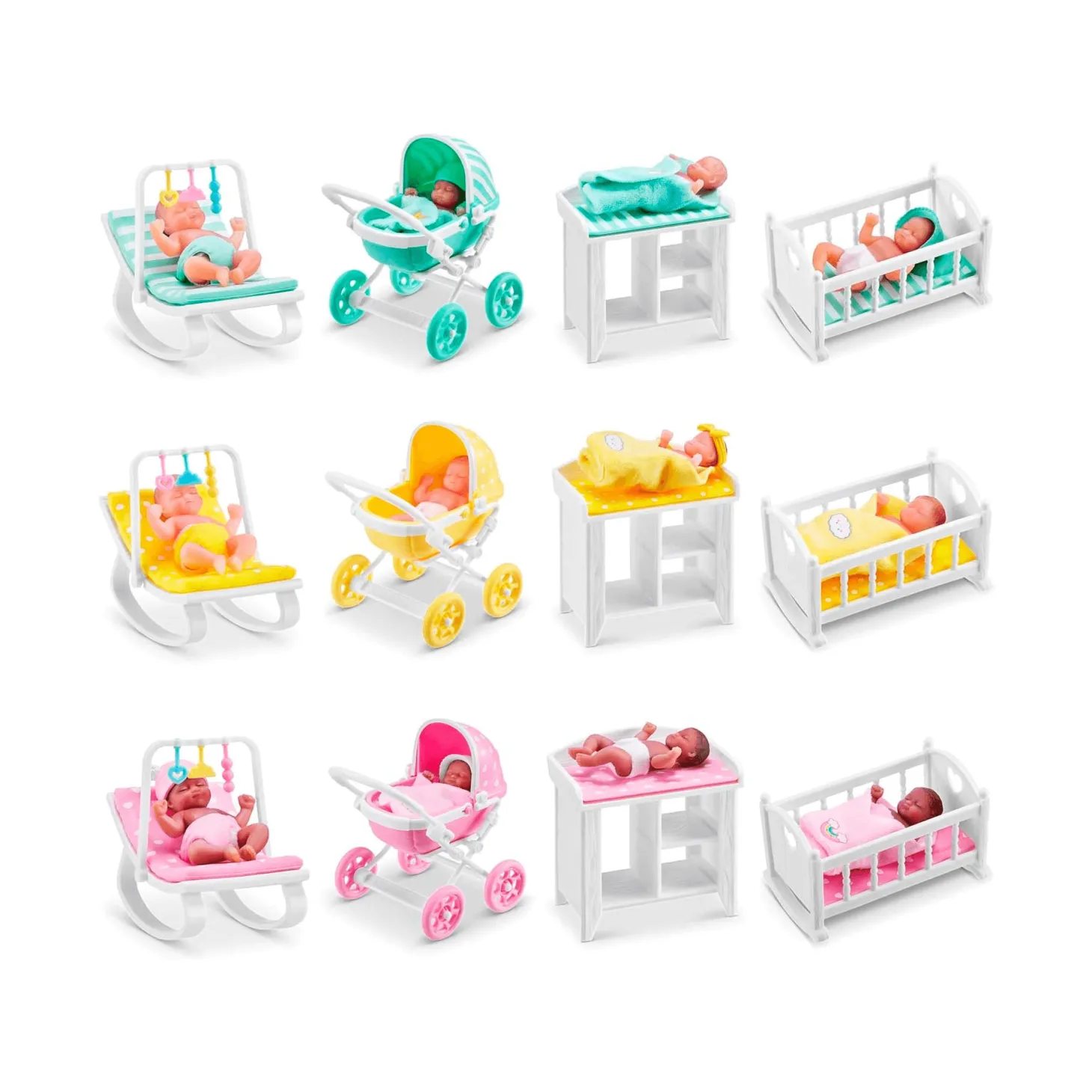 - 12 Bebés y Accesorios para Coleccionar: La serie incluye 12 diferentes bebés y sets de juego como cuna, carrito y cambiador, en varios colores para coleccionar.