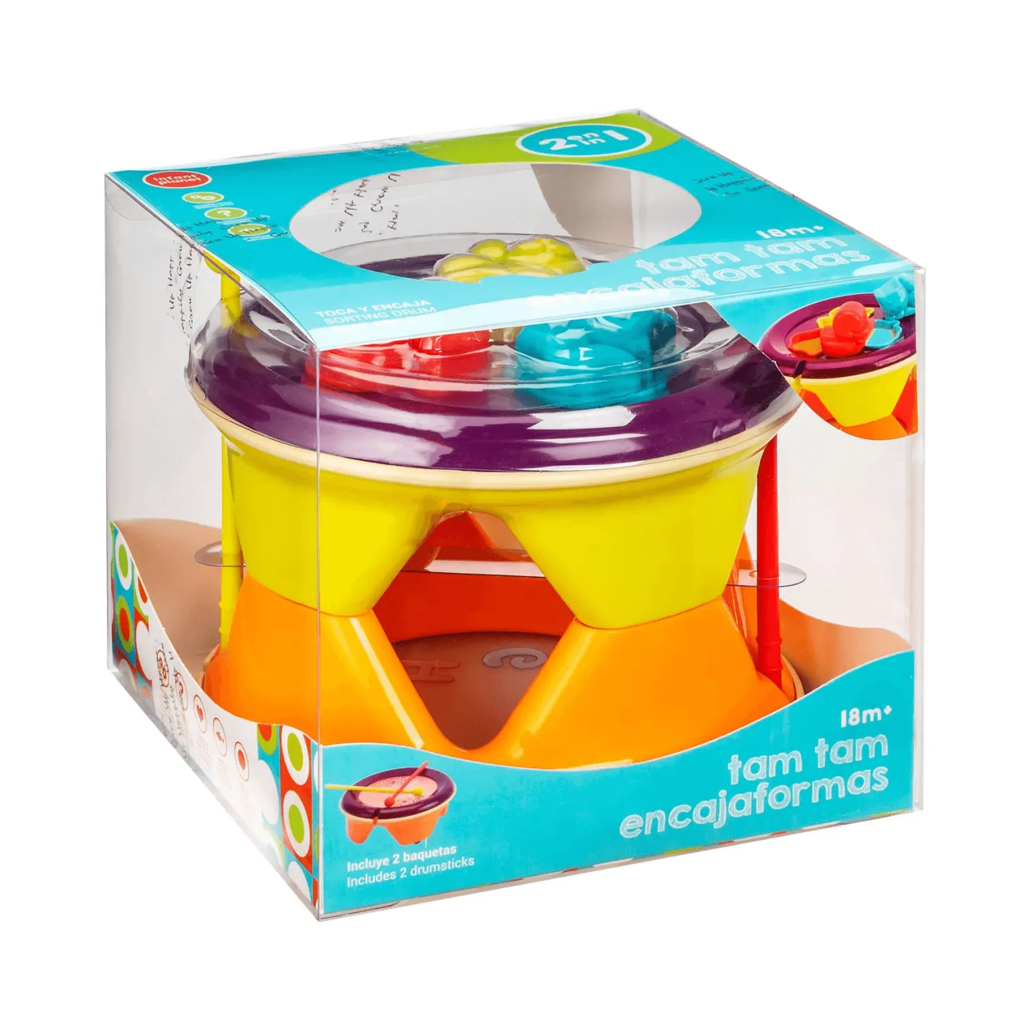 - Desarrollo Musical: Por el otro lado, el Tam Tam Encajaformas cuenta con un tambor tipo tam tam que permite al bebé explorar y desarrollar sus habilidades musicales de percusión. ¡Es una manera divertida de fomentar el sentido del ritmo y la creatividad musical desde una edad temprana!