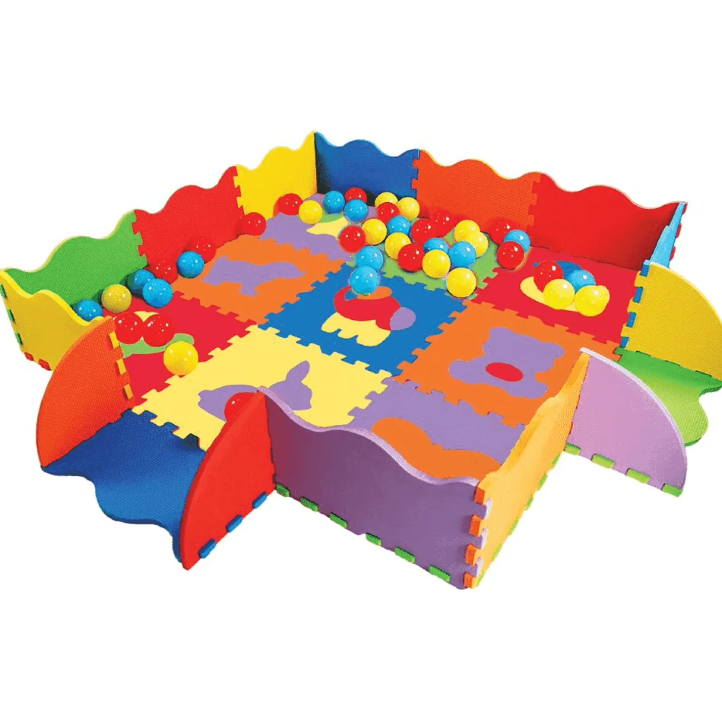 Crear una mini piscina de bolas, practicar lanzamientos divertidos, construir un espacio cerrado con las piezas o inventar circuitos de juego. ¡Un tapiz versátil que crece con el peque!