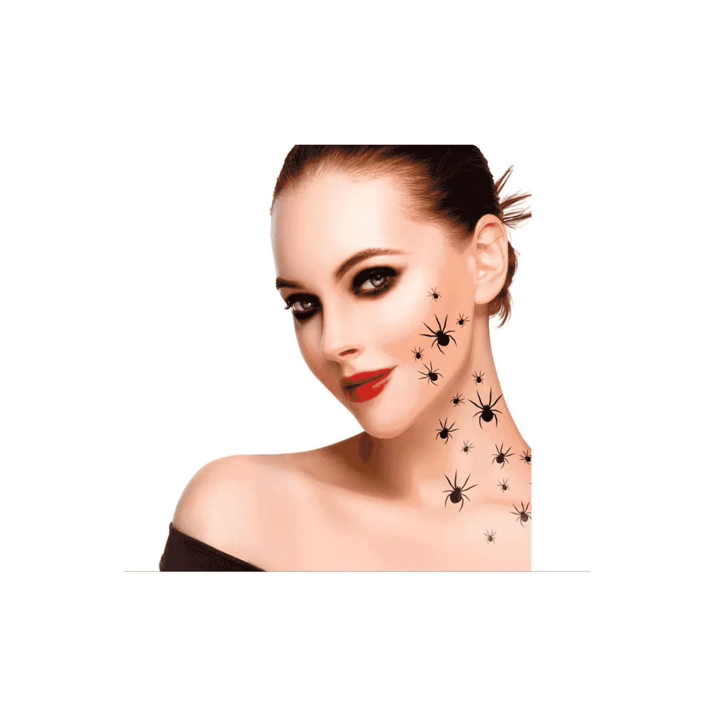 ¡Prepara tu piel para la noche de Halloween con estos impactantes tatuajes de arañas en color negro! Este paquete incluye 16 tatuajes de arañas, lo que te proporciona un toque espeluznante a tu aspecto.