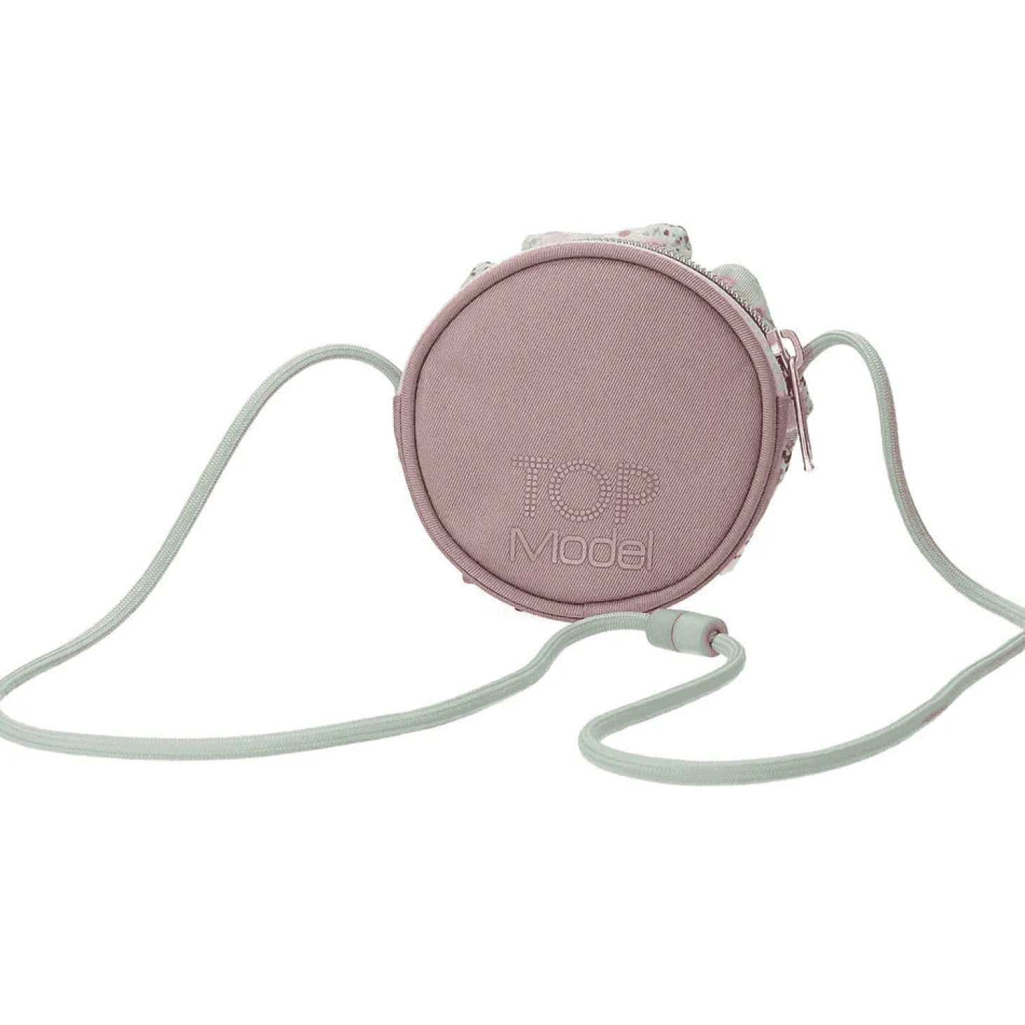 Descripción del producto: Este monísimo bolsito redondo de TOPModel llama la atención por la aplicación acolchada con forma de flor. En colores rosa pálido, verde salvia tendencia y con un bonito estampado de flores. Cierra con cremallera y el cordón bandolera va provisto de cierre de seguridad que se abre al recibir un tirón brusco. Dimensiones: 11x11x4 cm aprox. Material: poliéster 100 por 100.