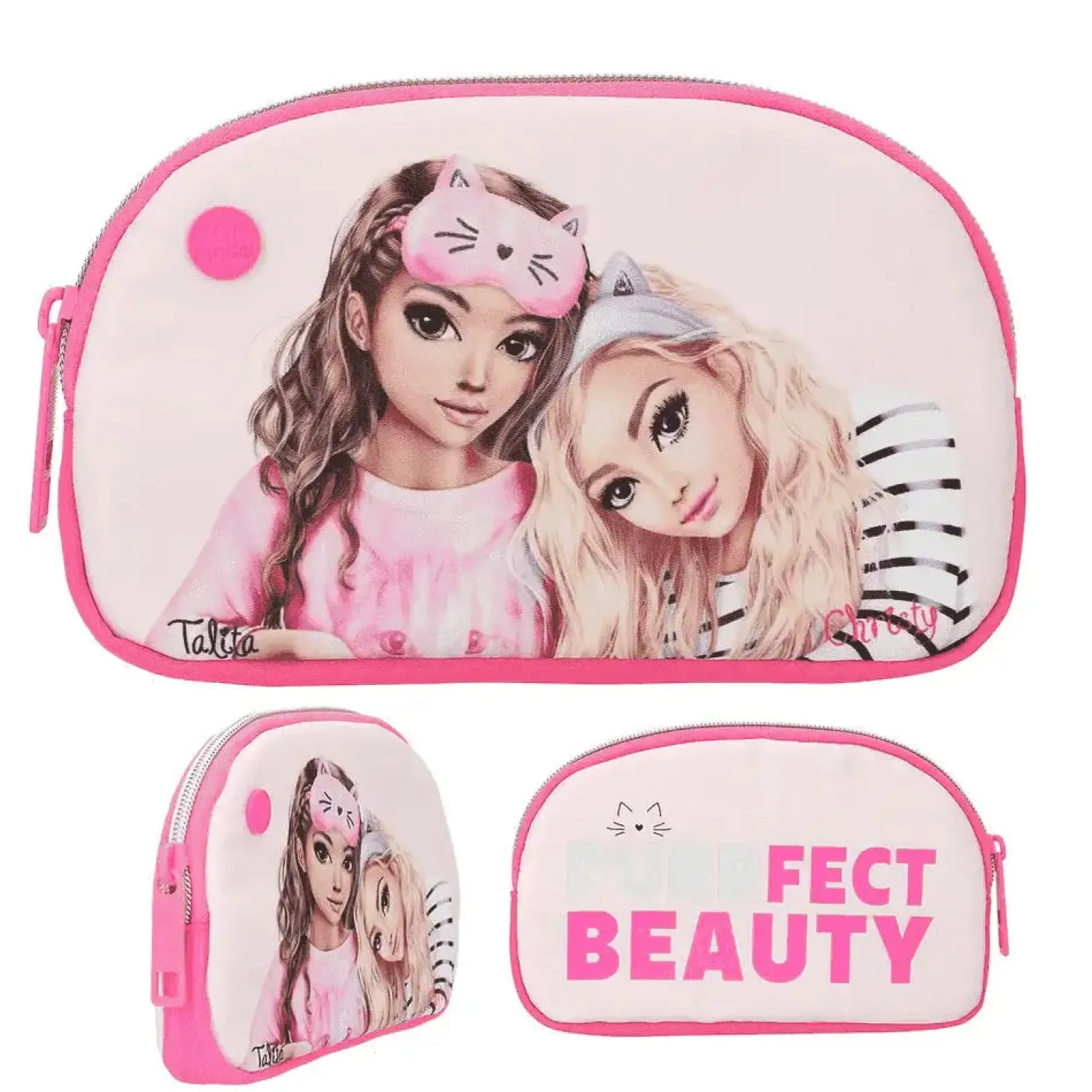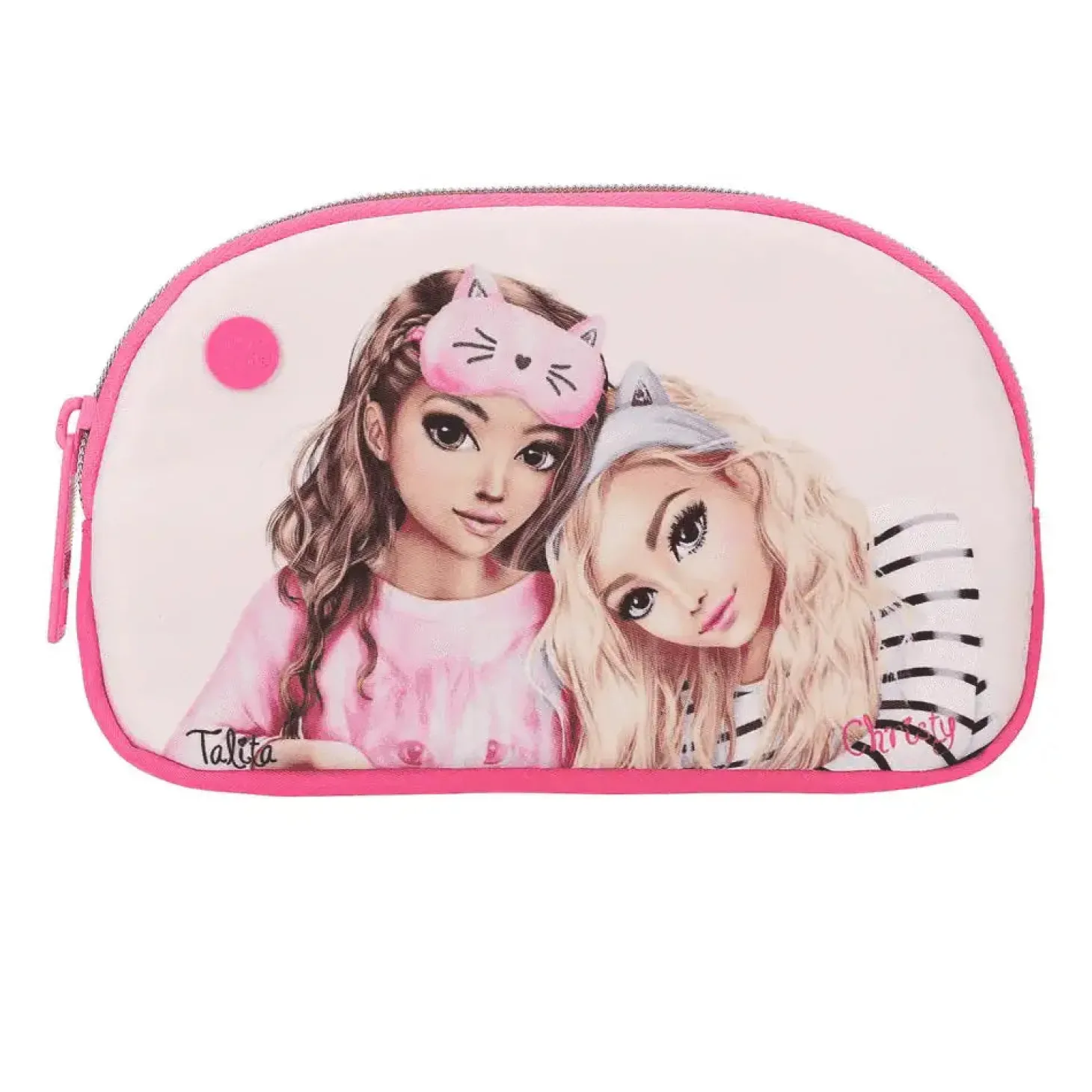Descripción del producto: Belleza para viajar. Este pequeño neceser plano de color rosa de TOPModel destaca por sus detalles en fucsia neón, dos modelos como motivo principal de la cara delantera y un chulísimo mensaje con letras en colores neón y metálico en la cara trasera. Material: poliéster 100 por 100.