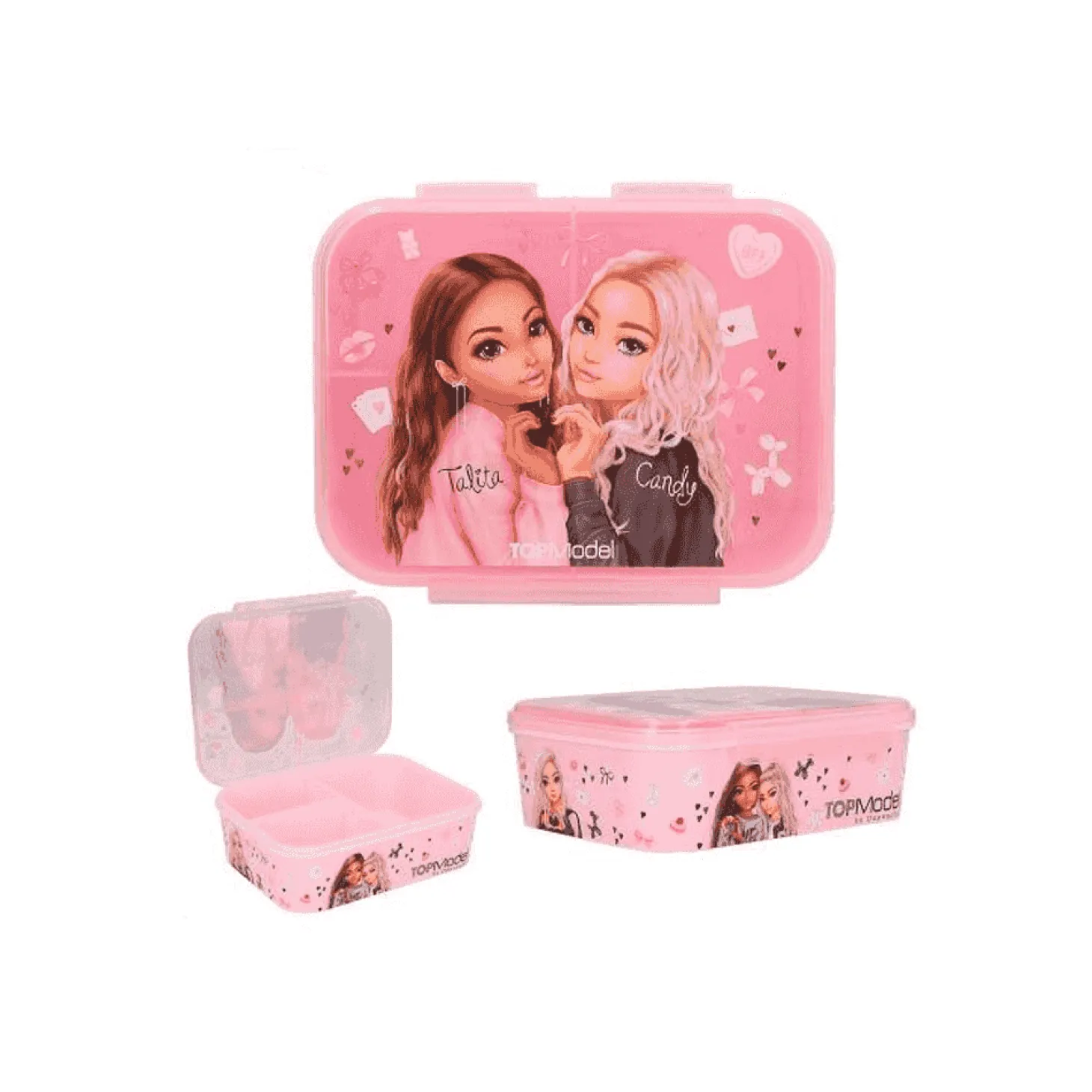 ¡Las meriendas serán mucho más divertidas con el TOPModel Táper My BFF! Diseñado para las pequeñas fans del universo TOPModel, este práctico y adorable recipiente es perfecto para llevar snacks, fruta, galletas o el desayuno al cole con un toque de estilo inconfundible. Con un diseño rosa pastel y la ilustración de Candy y Talita, este táper transmite dulzura, amistad y moda en cada detalle.
