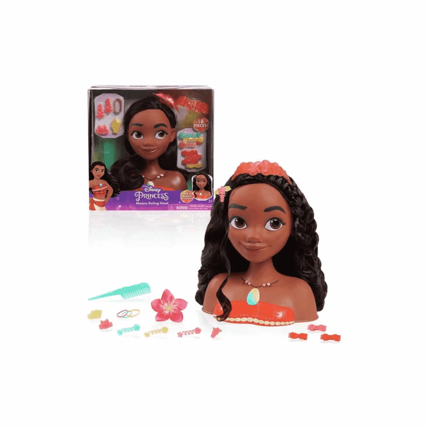 El busto de peinado de Moana está diseñado para que los niños puedan practicar sus habilidades de estilismo y creatividad. Este juguete ofrece una experiencia interactiva en la que los pequeños podrán crear diferentes peinados con su heroína favorita de Disney.